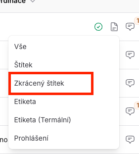 Zkrácená verze štítku u zakázky