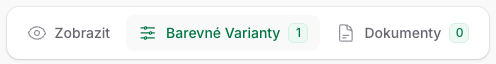 Pro nastavení barevných variant otevřete existující materiál kliknutím v základním přehledu materiálů. Následně ve středovém menu (viz obrázek níže) přejděte do sekce Barevné varianty.