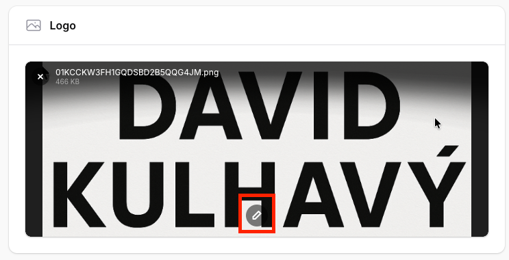 Nahrajte logo a následně klikněte na ikonu tužky, které se zobrazí ve spodní části obrázku: