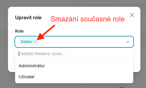 U jednoho uživatele nikdy nenastavujte více rolí. Pokud potřebujete roli změnit, nejprve původní roli odeberte kliknutím na křížek a poté vyberte novou.
