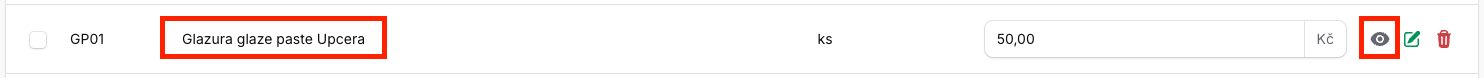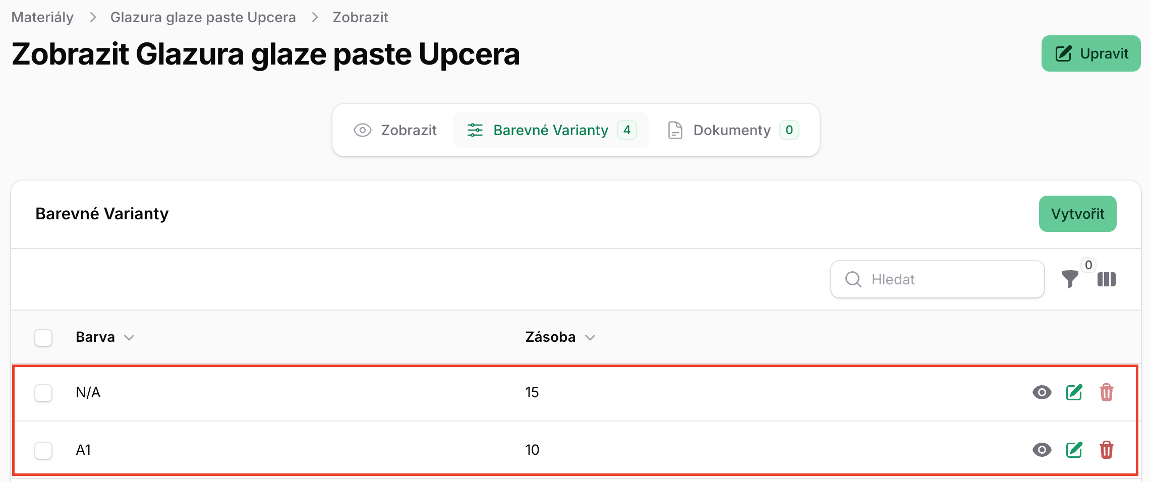 V hlavním přehledu materiálů (hlavní levé menu > Materiály ) otevřete kartu konkrétního materiálů.