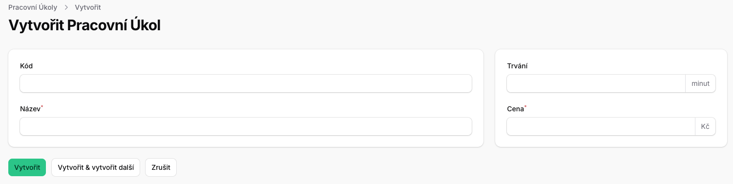 V hlavním menu přejděte do nabídky Pracovní úkoly a přidejte úkol kliknutím na tlačítko Vytvořit.