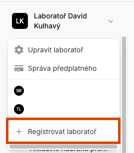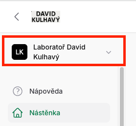 TIP: Mezi jednotlivými laboratořemi pak můžete jednoduše přepínat pomocí stejné nabídky, aniž byste se museli odhlašovat a znovu přihlašovat. Všechny laboratoře, které vlastníte nebo k nim máte přístup, spravujete přehledně ze svého hlavního účtu.